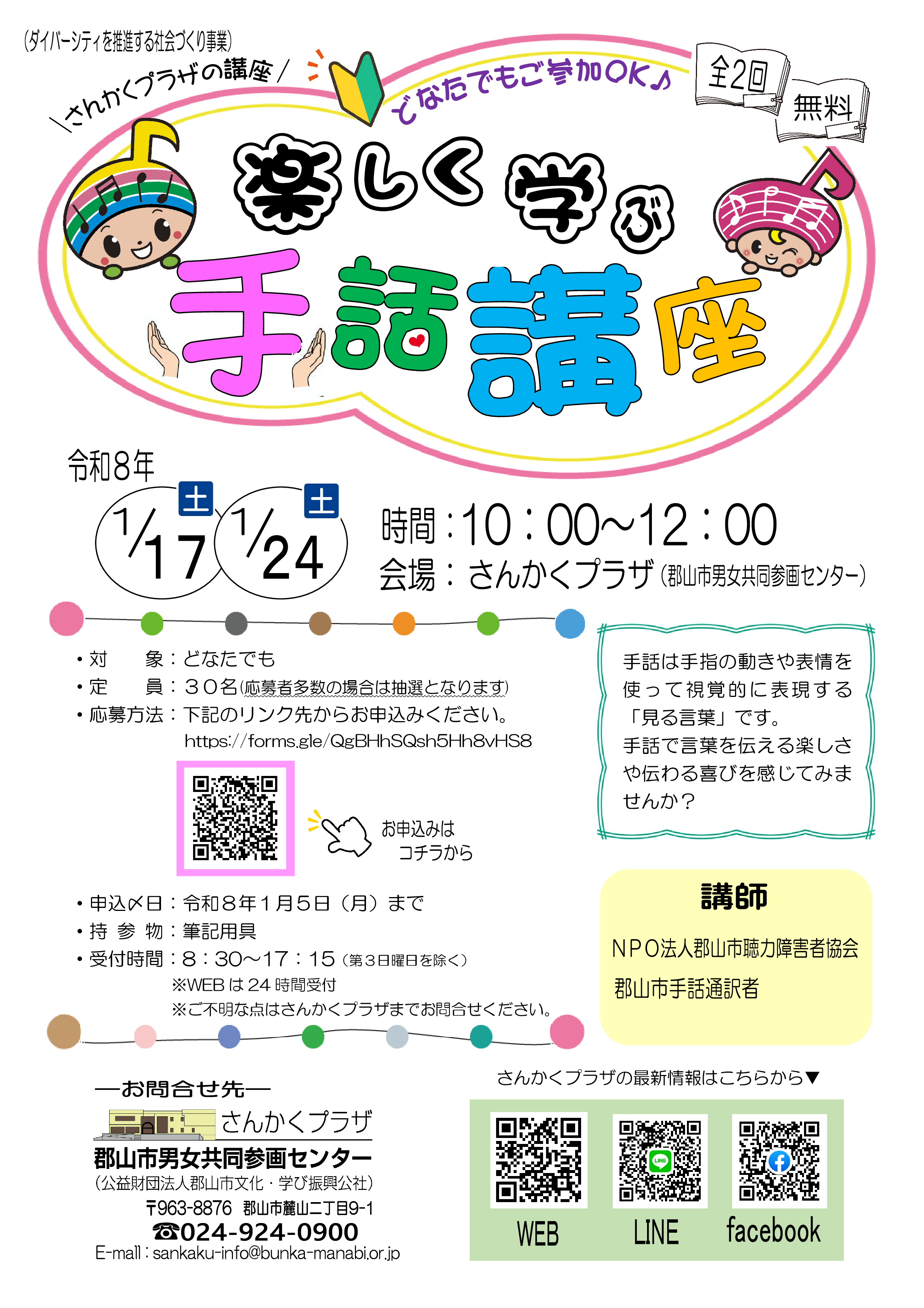 楽しく学ぶ手話講座(全2回)