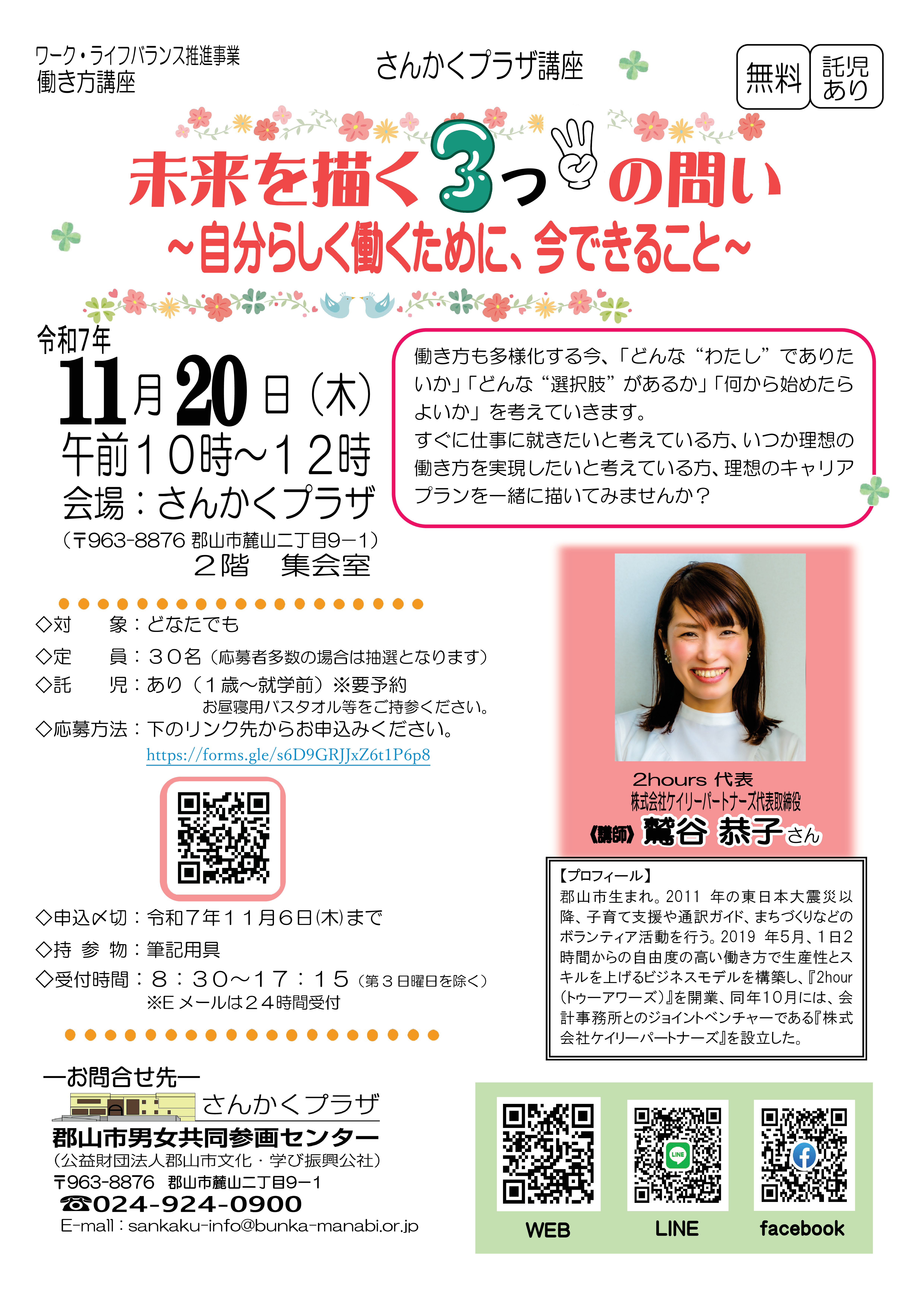 働き方も多様化する今、「どんな“わたし”でありたいか」「どんな“選択肢”があるか」「何から始めたらよいか」を考えていきます。