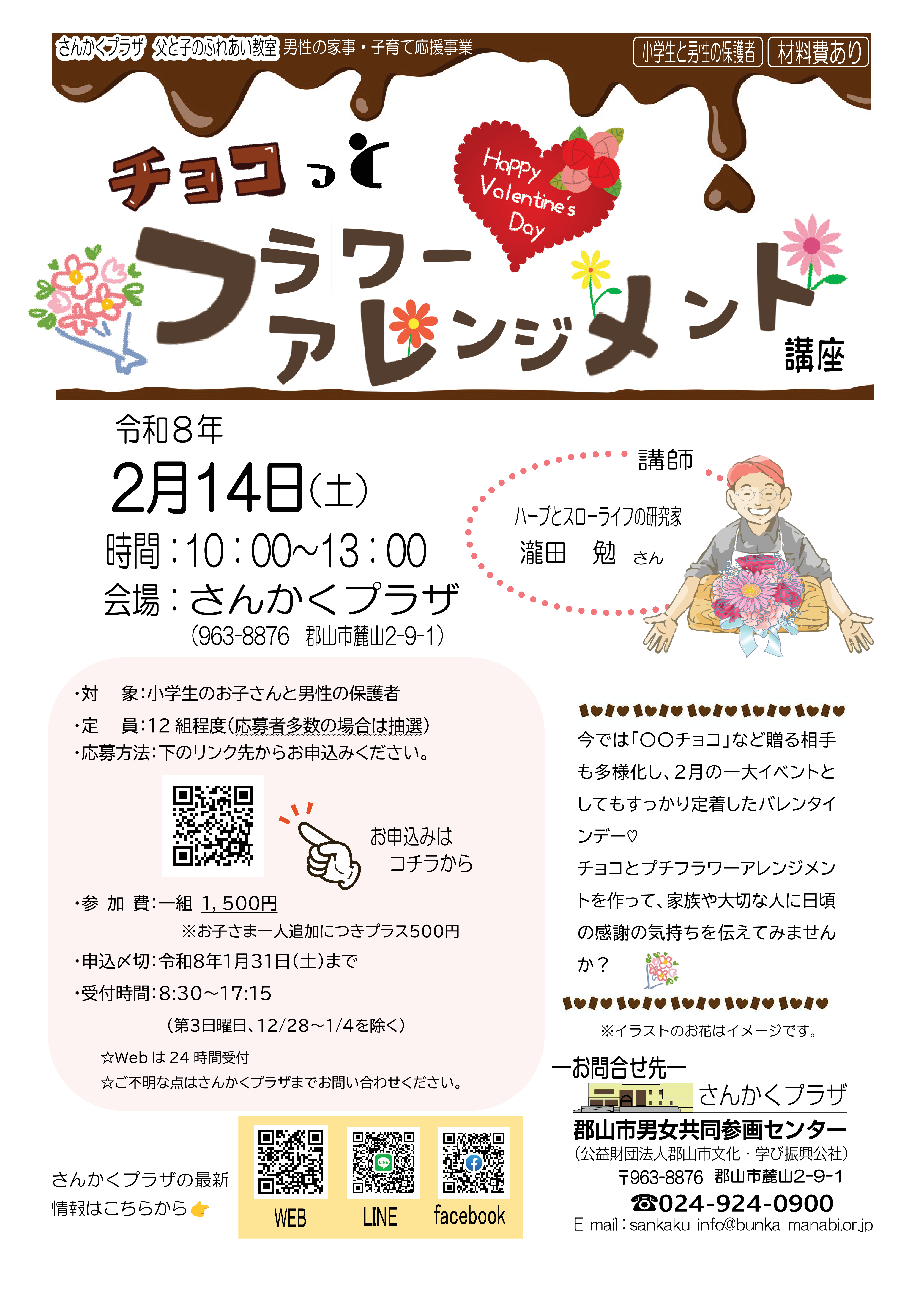 父と子のふれあい教室【チョコレート作りとプチフラワーアレンジメント】