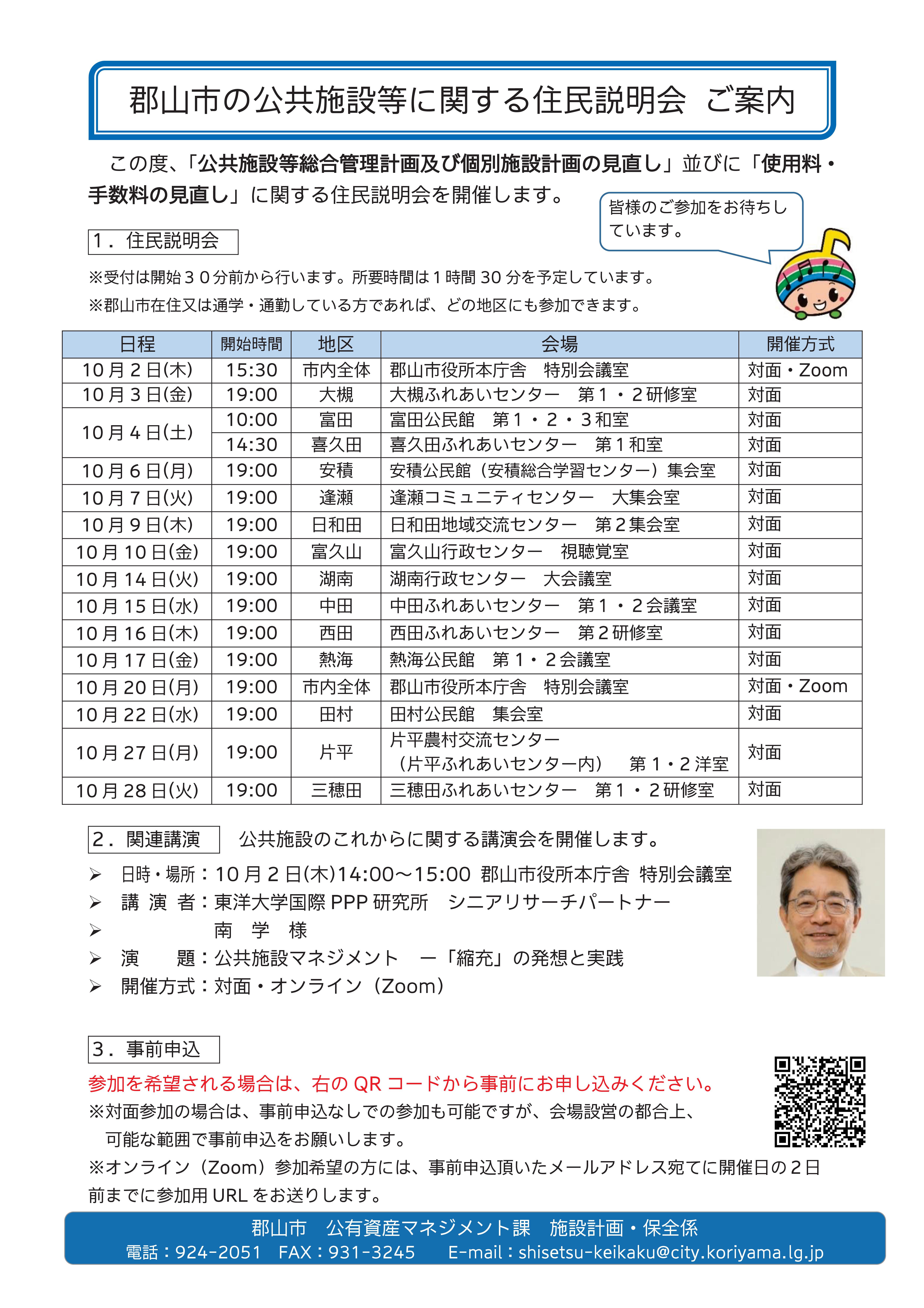 郡山市の公共施設等に関する住民説明会と講演会のご案内