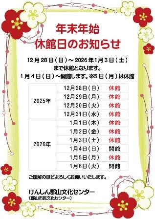 2025年12月28日(日)~2026年1月3月(土)は休館日となります。