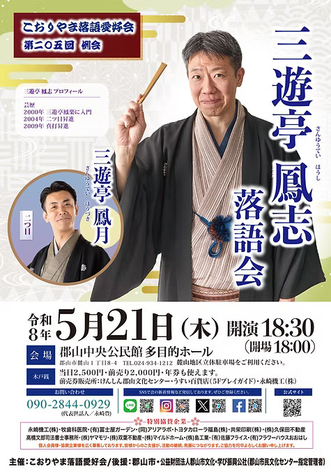 【チケット】こおりやま落語愛好会第205回例会 三遊亭 鳳志 落語会<好評発売中・先着順>