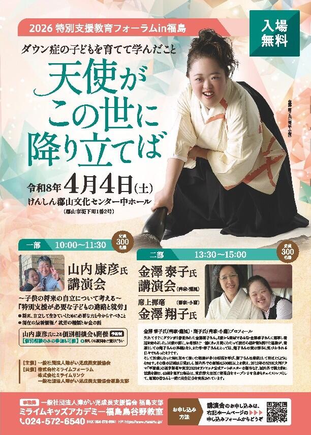 最新情報は、主催者である一般社団法人障がい児成長支援協会福島支部のホームページ(外部サイトhttps://www.miraimu.jp/lecture-detail/28/)をご覧ください。